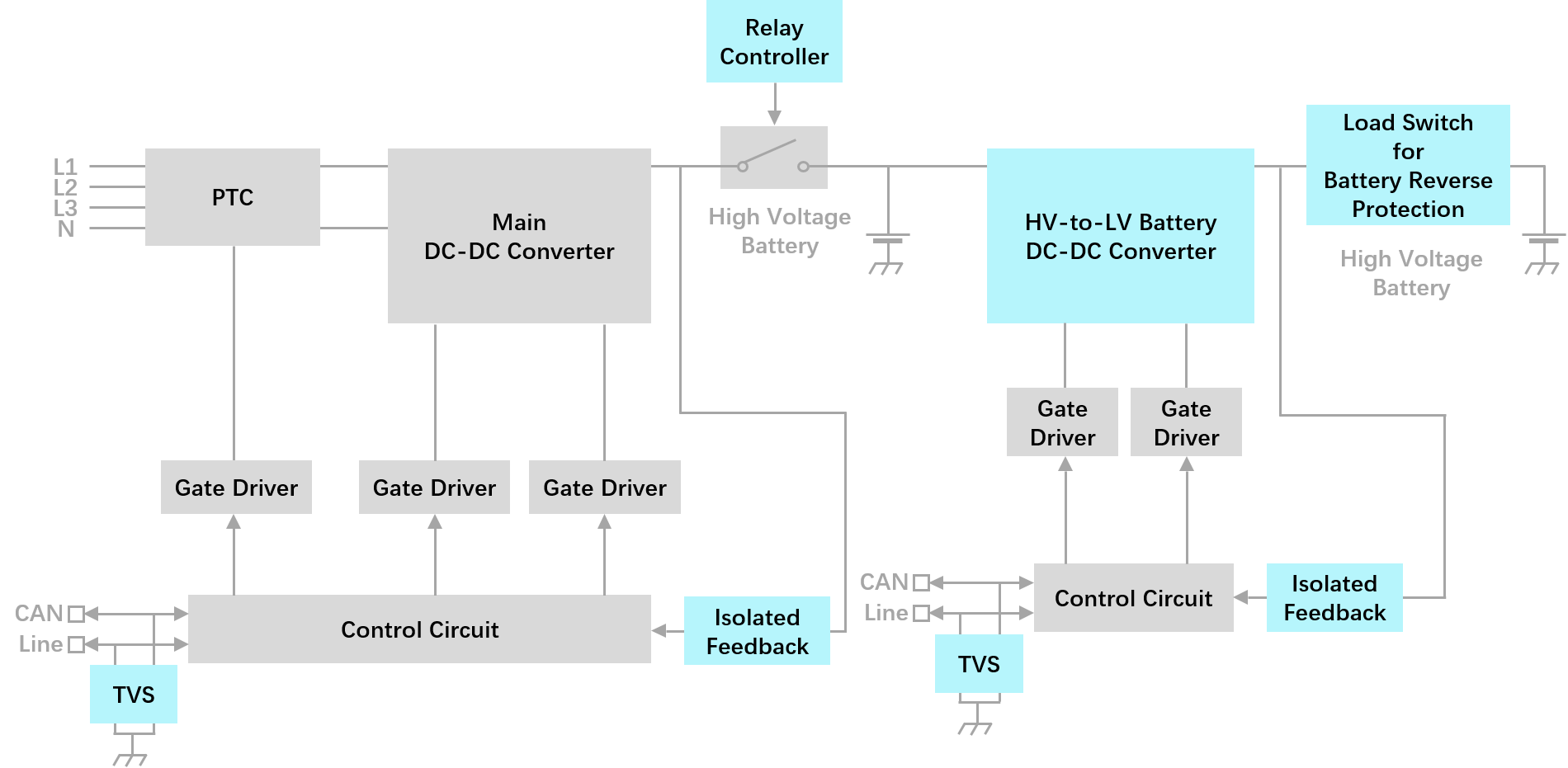 電網(wǎng)中的交流電通過交流充電樁直接給車載充電器 (OBC) 供電,OBC 把 AC 轉(zhuǎn)換成 DC,然后通過配電箱為車內(nèi)的動(dòng)力電池充電。直流充電樁則包含許多 AC-DC 電源模塊。從目前充電樁市場(chǎng)的狀況來看,有 3 大趨勢(shì):寬范圍的恒定功率、寬范圍的輸出電壓、更高功率的模塊。 兩個(gè)主要功率級(jí)。首先,功率因素校正 (PFC) 級(jí),保持輸入電流和電壓之間的相位關(guān)系,最大限度地減少線路/電網(wǎng)電流的總諧波失真 (THD) 。這有助于減少任何浪費(fèi)的無功功率,提高整體能效。 第二功率級(jí)是 DC-DC 轉(zhuǎn)換器,它從 PFC 級(jí)獲得 DC 輸出,并將其轉(zhuǎn)換為電池充電所需的電平。轉(zhuǎn)換器的輸出電壓和電流基于電池的整體健康狀態(tài)和充電狀態(tài)隨時(shí)間變化。 不論是功率因數(shù)校正(PFC)、原邊側(cè) DC-DC、或二次整流,捷捷微電都具有相應(yīng)的解決方案,汽車系列產(chǎn)品涵蓋二極管、MOSFET、TVS 等各類產(chǎn)品。比如:整流+LLC 構(gòu)成了充電樁的基本電路,可采用 FRED(快恢復(fù)二極管)方案;CAN 通訊口的 ESD 保護(hù)。