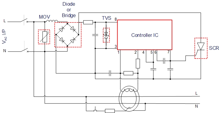 漏電保護(hù)器,簡(jiǎn)稱漏電開關(guān),又叫漏電斷路器,主要是用來在設(shè)備發(fā)生漏電故障時(shí)以及對(duì)有致命危險(xiǎn)的人身觸電保護(hù),具有過載和短路保護(hù)功能,可用來保護(hù)線路或負(fù)載的過載和短路,亦可在正常情況下作為線路的不頻繁轉(zhuǎn)換啟動(dòng)之用。 目前市場(chǎng)上使用的漏電保護(hù)裝置種類繁多,但大體的原理都相差不大。漏電保護(hù)器主要是由三部分組成:檢測(cè)元件、中間放大環(huán)節(jié)、操作執(zhí)行機(jī)構(gòu) 1. 檢測(cè)元件:由電流互感器組成,檢測(cè)漏電電流并發(fā)出信號(hào) 2. 放大環(huán)節(jié):將微弱的漏電信號(hào)放大,按裝置不同可采用機(jī)械式或電子式 3. 執(zhí)行機(jī)構(gòu):收到信號(hào)可控硅由斷開狀態(tài)變?yōu)閷?dǎo)通狀態(tài),主線圈通電后,主開關(guān)由閉合狀態(tài)轉(zhuǎn)換為斷開狀態(tài),從而切斷電源 應(yīng)用于漏電保護(hù)器領(lǐng)域,捷捷微電 能提供比較齊全的元件解決方案。比如:AC 輸入端防浪涌的壓敏電阻(MOV)、對(duì)交流進(jìn)行整流的高壓整流二極管 (Diode) 或者是整流橋(Bridge)、對(duì)電源端進(jìn)行過壓防護(hù)的瞬態(tài)抑制二極管(TVS)、整個(gè)電路的控制核心集成電路(IC)、電路動(dòng)作執(zhí)行機(jī)構(gòu)(SCR)等。