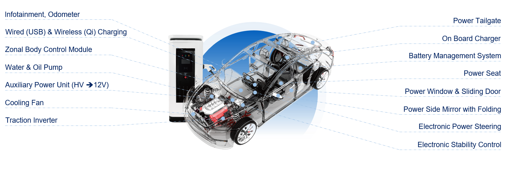 捷捷微電 車規(guī)級(jí)產(chǎn)品 (MOSFET, TVS) 可廣泛應(yīng)用在汽車助力轉(zhuǎn)向,油泵,水泵,以及電動(dòng)車窗,尾門(mén),座椅,天窗等。 車規(guī)級(jí) MOSFET 產(chǎn)品在盡量降低導(dǎo)通內(nèi)阻的同時(shí),能額外降低器件結(jié)電容效應(yīng),減少 Qg,進(jìn)而提供較高的工作效率,減少發(fā)熱,并且提供兼容市面主流應(yīng)用先進(jìn)封裝架構(gòu),如 PDFN5x6-8L, PowerJE?7x8 (sTOLL 兼容), PowerJE?10 x12 (TOLL 兼容) 常用在電機(jī)開(kāi)關(guān)等應(yīng)用。同時(shí),這些產(chǎn)品經(jīng)過(guò)嚴(yán)格 AEC-Q101 Rev-E 測(cè)試,具備高可靠性。 車規(guī)級(jí)瞬態(tài)抑制二極管 (TVS) 采用捷捷微電自有專利結(jié)構(gòu) DO-218 封裝,用于12V 和 24V 系統(tǒng)中,可通過(guò)拋負(fù)載 ISO 16750-2 P5a/5b 測(cè)試,脈沖功率達(dá)到 4.6 ~ 8.0kW,具備高度一致性,強(qiáng)耐沖擊性,實(shí)現(xiàn)高可靠性,為汽車電子產(chǎn)品安全保駕護(hù)航。