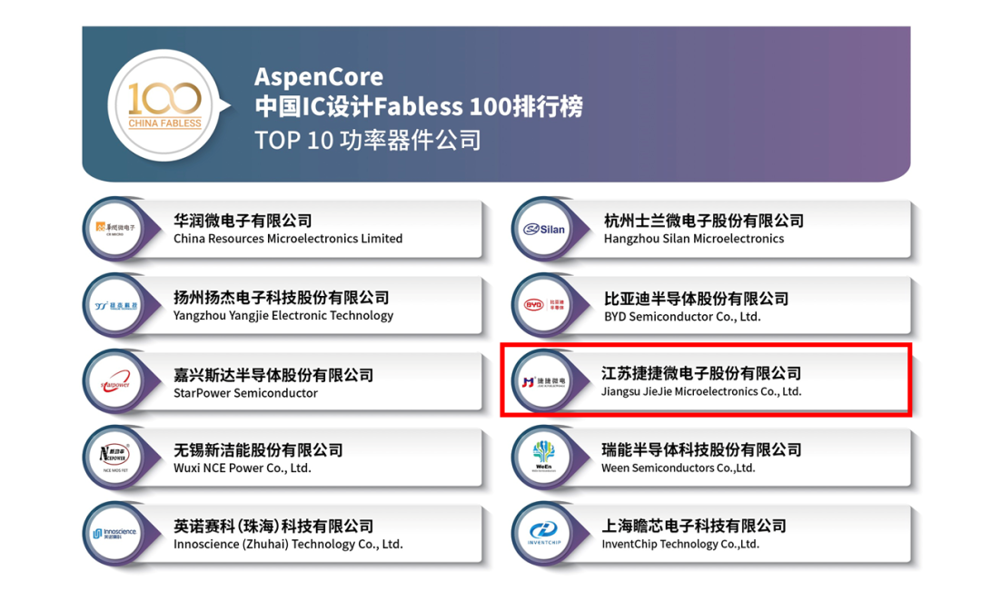 由全球歷史最久的科技界線上線下多媒體 Aspencore 分析師團隊根據(jù)量化數(shù)學模型、企業(yè)公開信息、廠商調(diào)查問卷,以及一手訪談資料,精心篩選出中國IC設(shè)計行業(yè)100家綜合實力和增長潛力最強的公司。這100家公司分為10大類別,每個類別評選出Top 10。捷捷微電 榮登“2023 中國IC設(shè)計 Fabless 100 排行榜之 Top 10 功率器件公司”!